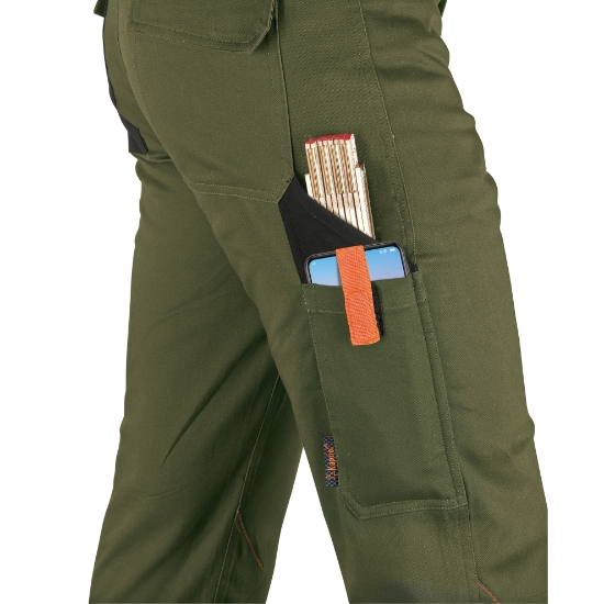 - Velik telefonski žep z zapenjanjem na trak na desni nogi