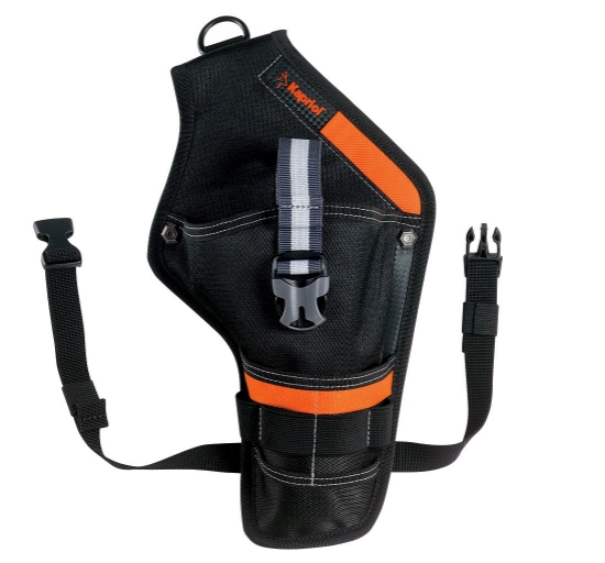 Torbica za baterijski vijačnik je opremljena s priročnim žepom z zaponko, žepom za nastavke, držali za orodje ter zaponko za pritrditev na stegno, ki omejuje premikanje med uporabo.